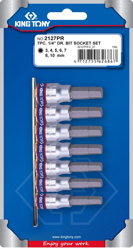 Набор торцевых насадок 1/4", Hex, 3-10 мм, L = 37 мм, 7 предметов